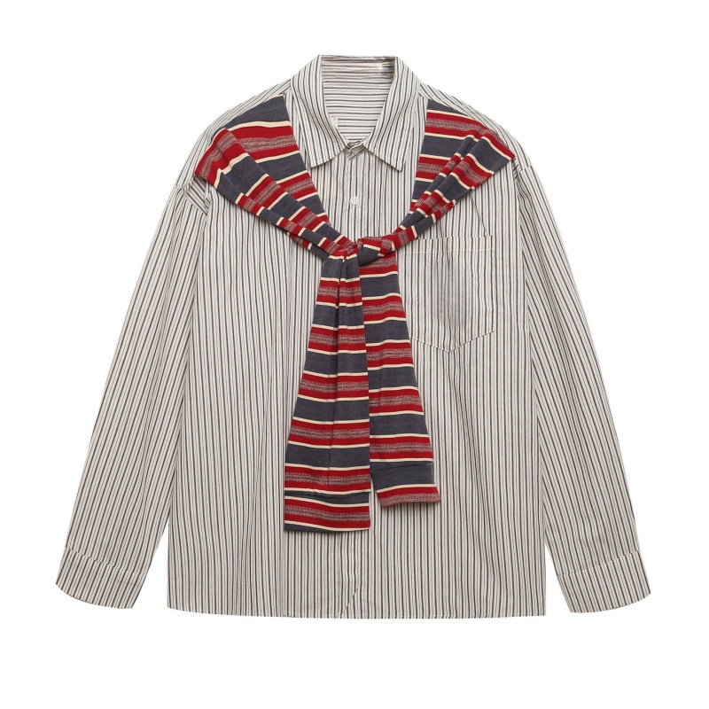 Fake Two-Piece Cape Striped Long Sleeves