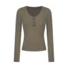 Retro V-Neck Button-Down Slim-Fit Long Sleeves
